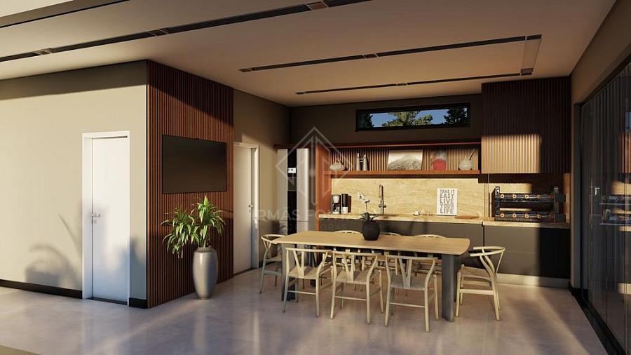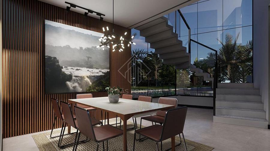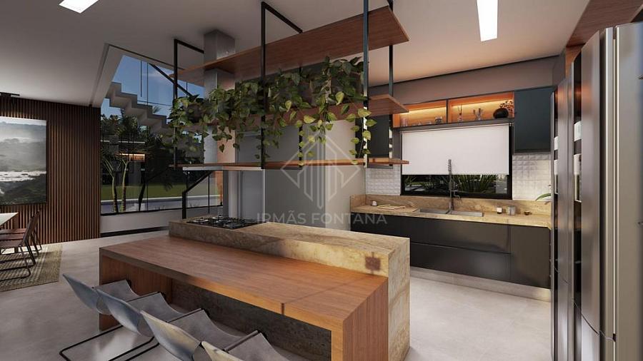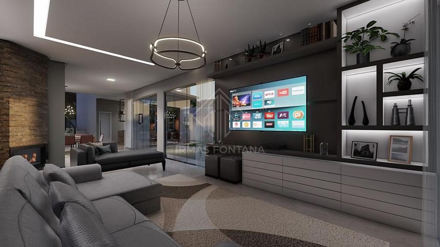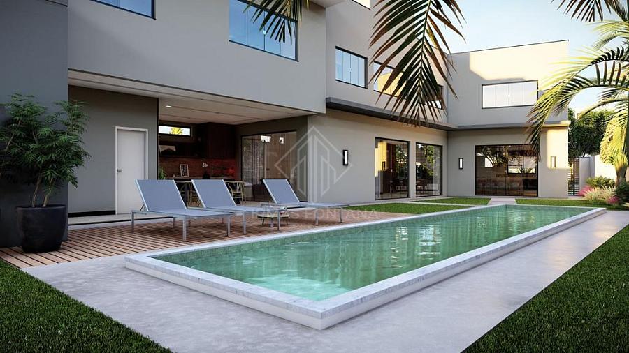 Apresentamos uma Casa Mobiliada no Condomínio Caledônia com 440 m² de área construída, que oferece espaços amplos e bem distribuídos. O imóvel possui uma suíte master com closet, banheira e chuveiro duplo, mais três suítes. O pé direito alto e a escadaria em granito adicionam elegância. A casa conta com sala, cozinha com espera para ilha, despensa, lareira, sala de jantar e sala de estar. A área gourmet possui churrasqueira a carvão. Também possui lavanderia, banheiro para área da piscina e aberturas em alumínio gold. A piscina tem prainha com 12,0x3,0m e 1,40m de profundidade, além de iluminação. Garagem coberta para 2 carros e 4 vagas descobertas.
