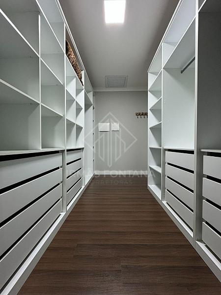 No piso superior, o sobrado dispõe de três suítes projetadas para proporcionar o máximo de conforto. A suíte master destaca-se com um amplo closet e uma sacada privativa, ideal para momentos de relaxamento. Outra suíte é integrada com uma sala/escritório, oferecendo um espaço multifuncional que pode ser adaptado às necessidades do morador. A terceira suíte completa a área íntima da casa, garantindo privacidade e conforto a todos os membros da família.